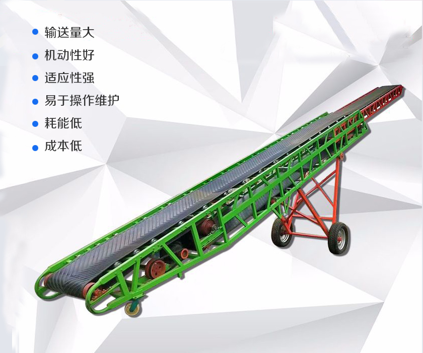 移動式皮帶輸送機是底部加裝了行走輪,移動方便,可根據現場向下輸送物料,也可用戶傾斜輸送,移動式皮帶輸送機可加裝擋料板來防止物料滑落.