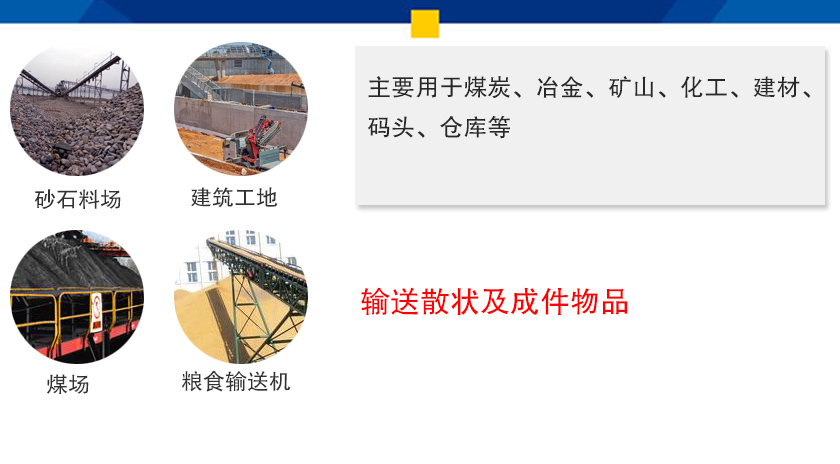 4、根據輸送量的大小采用不同的帶寬,還可在機尾加裝導料槽和擋板以防止物料滑落。