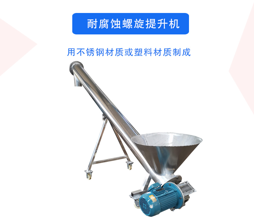 耐腐蝕螺旋提升機(jī)主要是采用不銹鋼材質(zhì)或塑料材質(zhì)制成的,可以滿足酸堿性等腐蝕性物料的輸送問題,可應(yīng)用在化工、食品、醫(yī)藥等行業(yè).