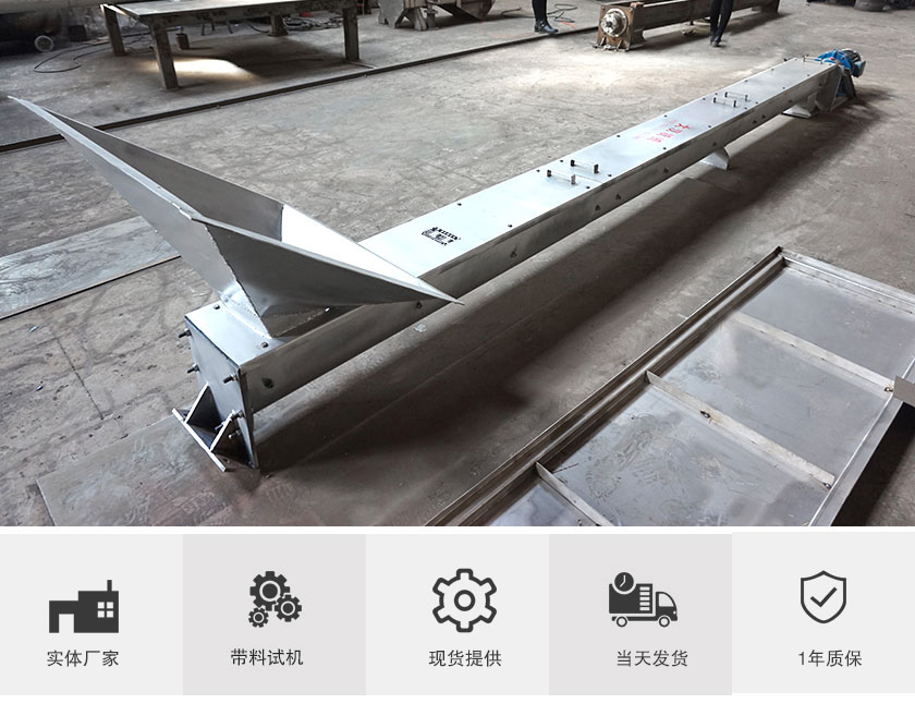 不銹鋼有軸螺旋輸送機:304或316L制成,造價高,不生銹耐腐蝕,耐高溫可達300℃,衛生標準高,多用于食品加工廠、醫藥廠或部分化工廠輸送使用,不對物料造成污染。