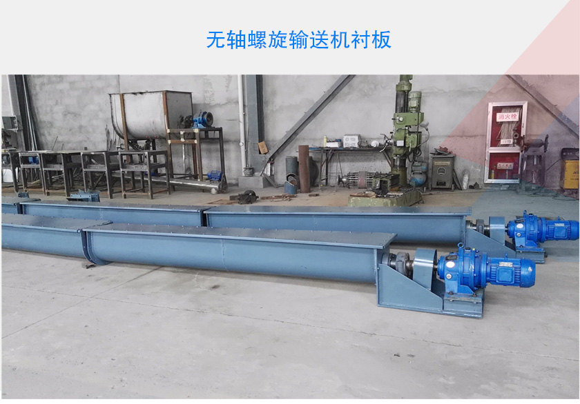 以上是對無軸螺旋輸送機襯板的介紹,在客戶使用當中,可以根據情況可自行更換襯板,螺旋輸送機襯板材質可依據用戶需要及輸送物料來選擇。
