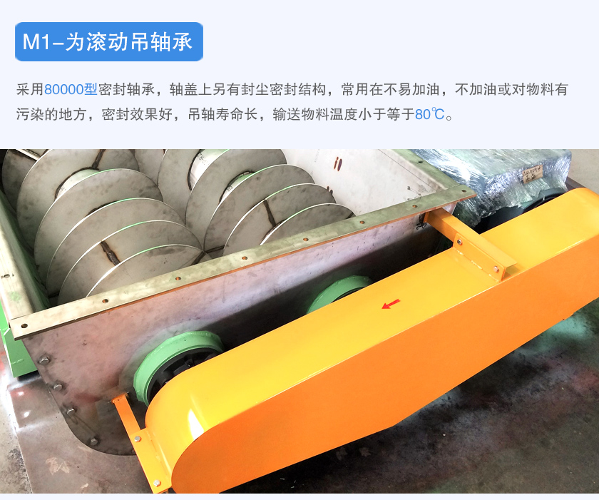 U型螺旋輸送機(jī)外形為u型槽式,根據(jù)其驅(qū)動方式、中間吊軸承、材質(zhì)可以分為以下幾種類型: